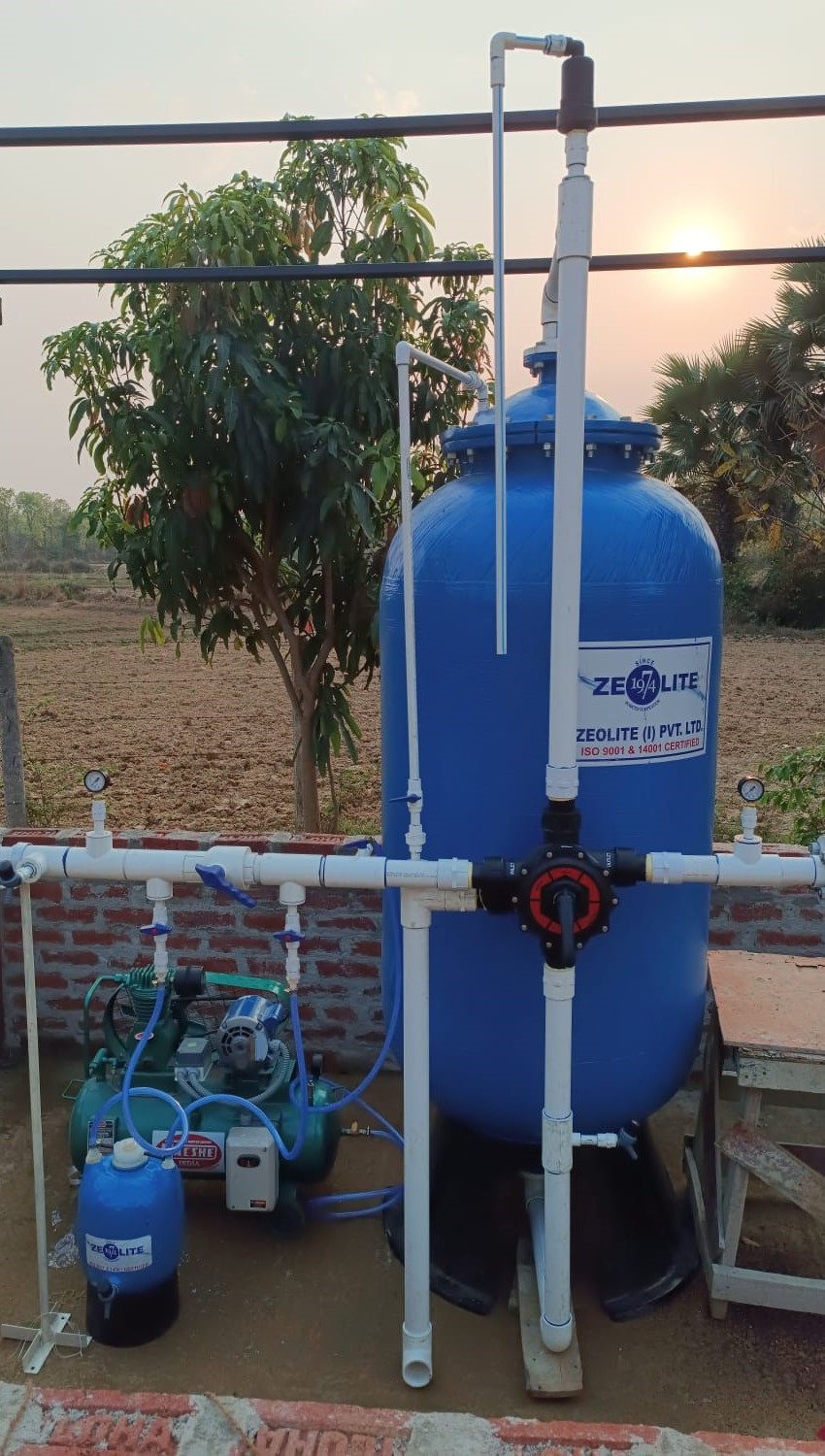 As water enters through the spray nozzle, soluble iron gets oxidized. In Zeolite Iron Removal System the trivalent iron gets arrested into Zeofil. The first stage of the iron removal process involves the oxidation of bivalent iron. Remaining soluble or insoluble iron precipitates on the Zeofil bed due to the catalytic effects of this oxidizing media. lt also arrests bio-turbidities of water as a result of surface activity. Hence Zeolite IR System gives complete solution for dissolved iron in water. Added accessories are also provided by Zeolite (I) Pvt. Ltd. For Coagulant Dozing, Flocculant Dozing, Airation, Chlorination, pH Control etc. For specific treatment depending on the quality & quantity of iron present in water.